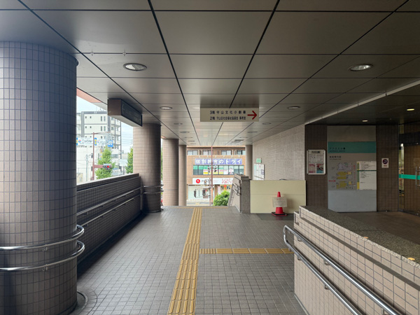 2まっすぐ進むと階段がありますので、下りて駅を出ます。