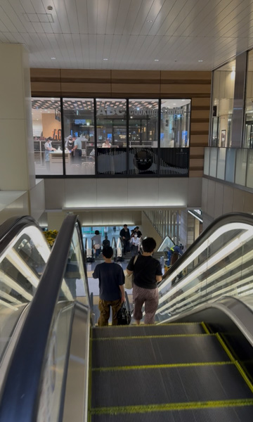 2エスカレーターを降りて、もみじ型のオブジェを右に曲がります。
