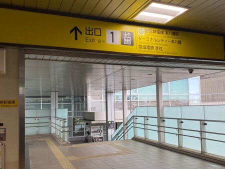 2階段を下り、京成電鉄本社を右へ進み、エスカレーターを1つ降ります。