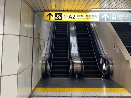 2エスカレーターが見えましたらA2出口へ向かって登ります。