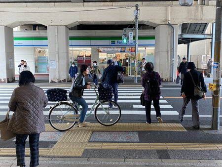 3Shapoを出ると正面にファミリーマートがあります。この信号は渡らずに左へ進みます。
