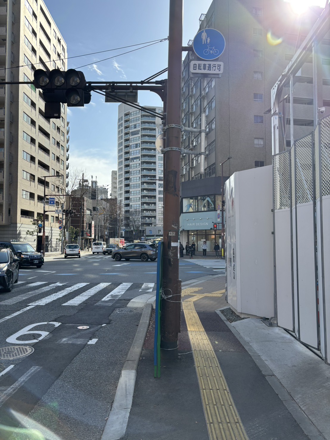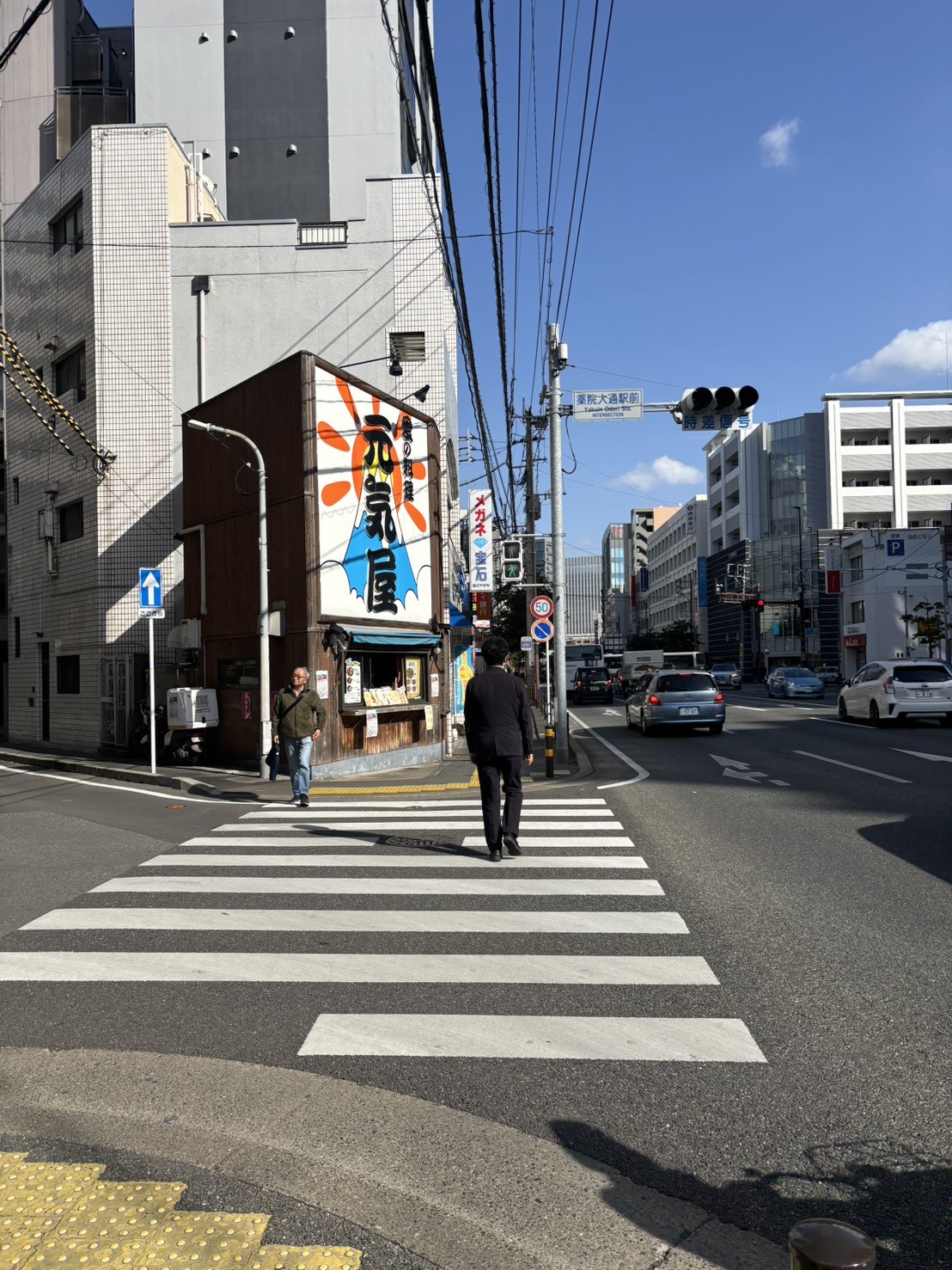 6薬院六つ角に差し掛かりますので、そのまままっすぐに横断歩道をお渡りください。