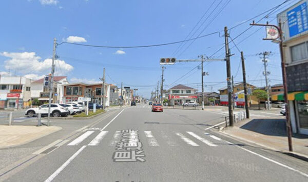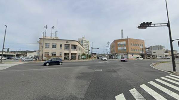 1泉駅を出て、駅前ロータリーから主要道路に出ます