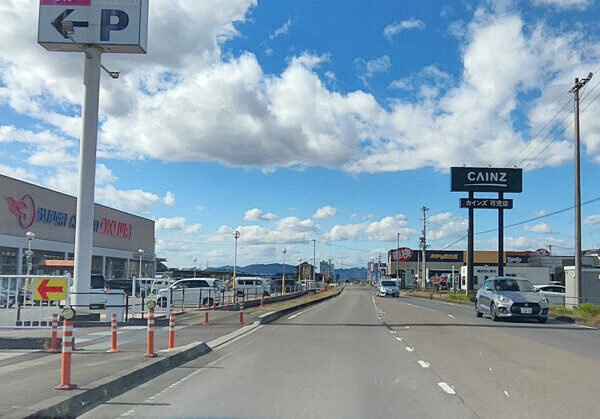 1カインズホームとオークワの間の道を可児方面へお進みください