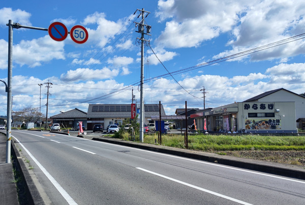 2右手に「からあげ」の文字が見えましたら右折して共用駐車場に駐車してください