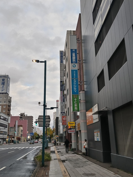 4エレベーターで1Fまで降り右手に進みますと、すぐにセーコーマートの入っているビルがあります。