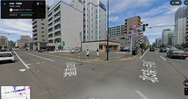 北5条通りに突き当たりますと、セブンイレブンが左手にありますので、そちらを左折してください。
