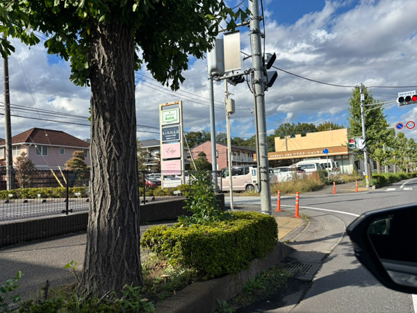 4店舗の入り口がふれあい道路沿い左に現れます(駐車場の入り口はふれあい道路に面してない)