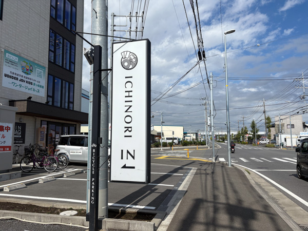 3バス停より北側を向くとラーメン”ICHINORI”の看板が見えます。
