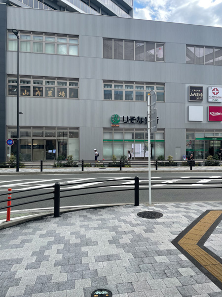 3最初の分岐で左に進みます。りそな銀行が見える道に出ます。