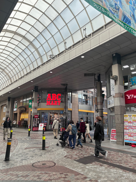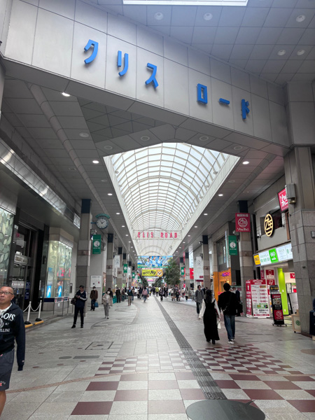 3「クリスロード」アーケードを直進します。