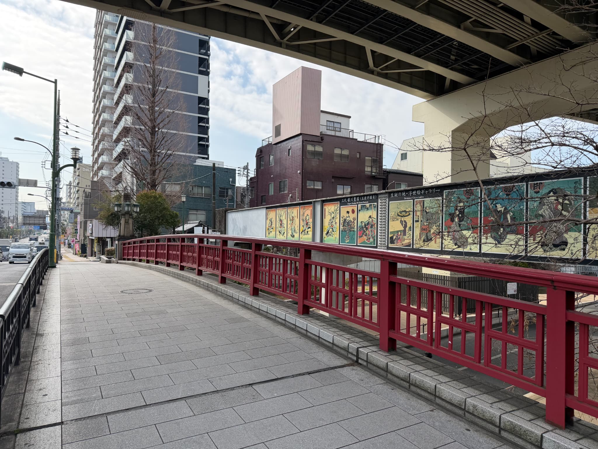 当院への途中に赤い橋(五の橋)を渡りそのまままっすぐ直進します。