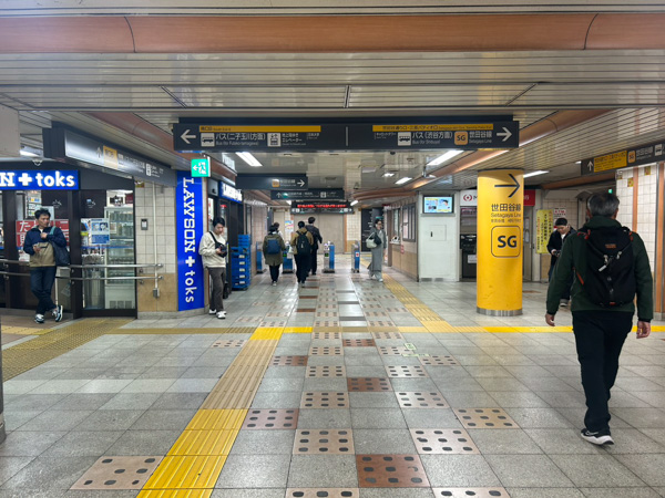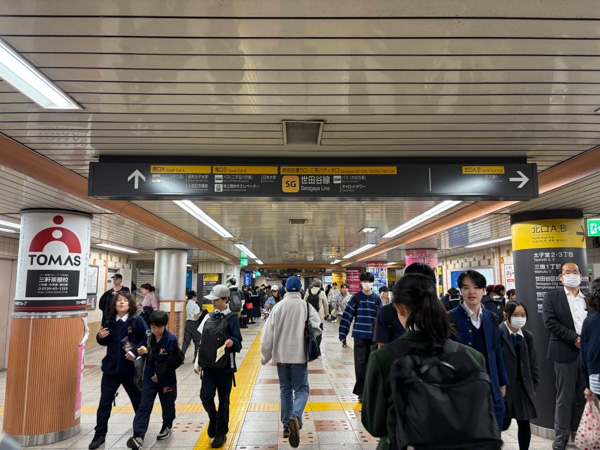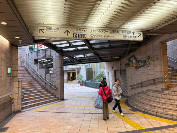 1三軒茶屋駅中央改札を出ましたら、そのまま真っ直ぐ歩いて『世田谷通り口・三茶パティオ口』方面にお進みください。