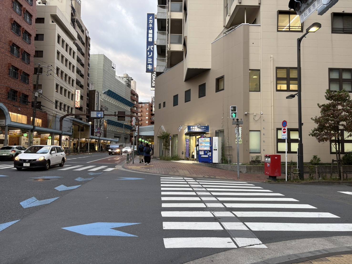 7階段を上がり、左手にあるの世田谷通りを右にお進みください。