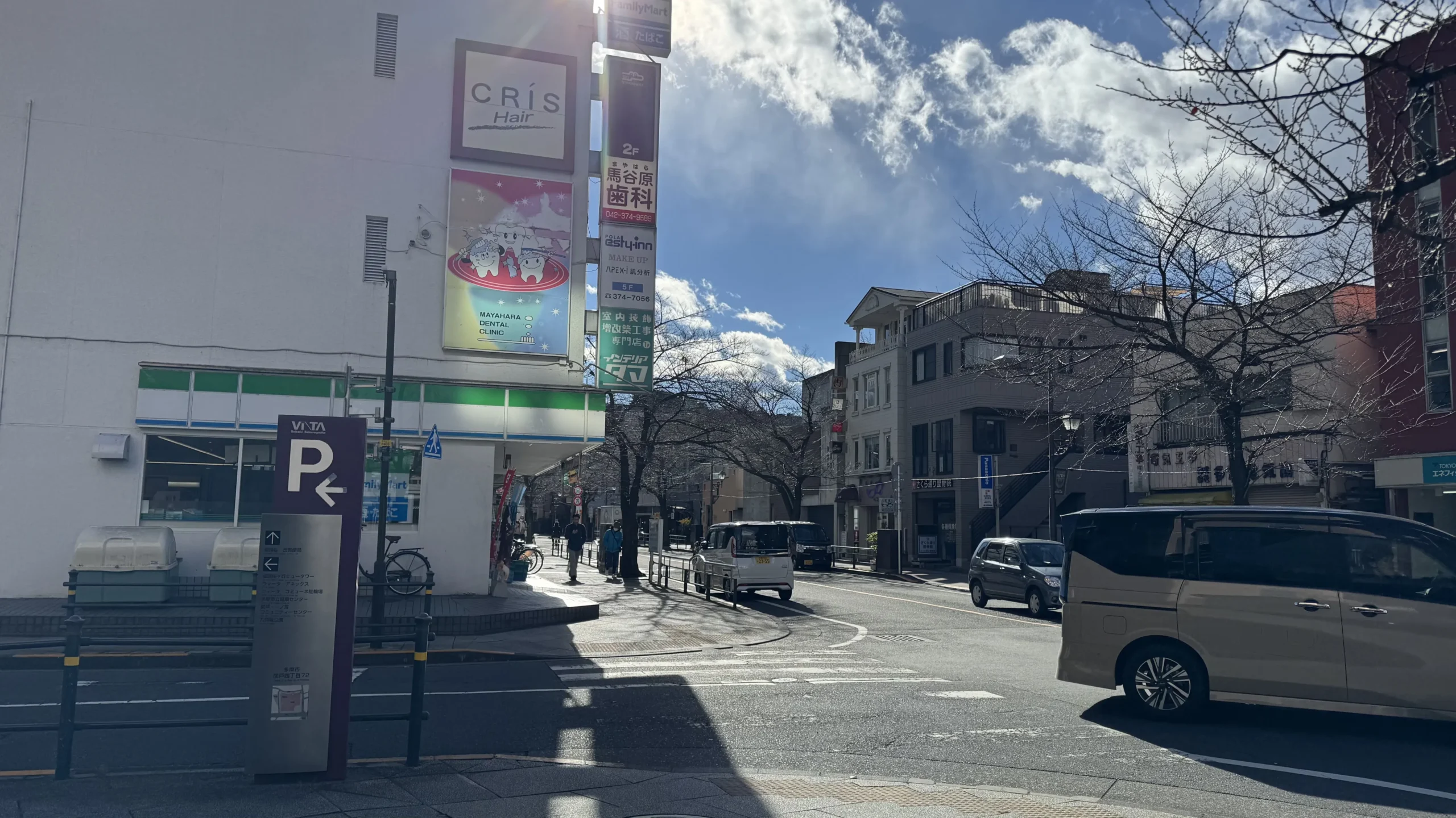 1聖蹟桜ヶ丘駅前交差点を南へ進むとファミリーマートがあるので、この交差点を左に曲がって下さい。