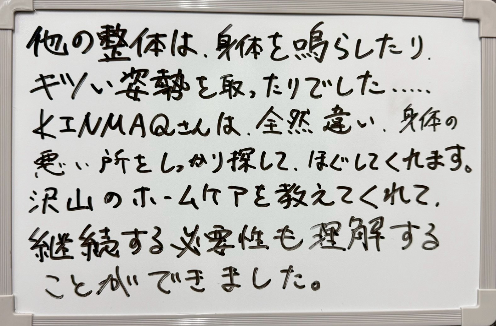 他の整体や病院、鍼灸院などと比較して、効果に対するKINMAQの違いはなんですか?