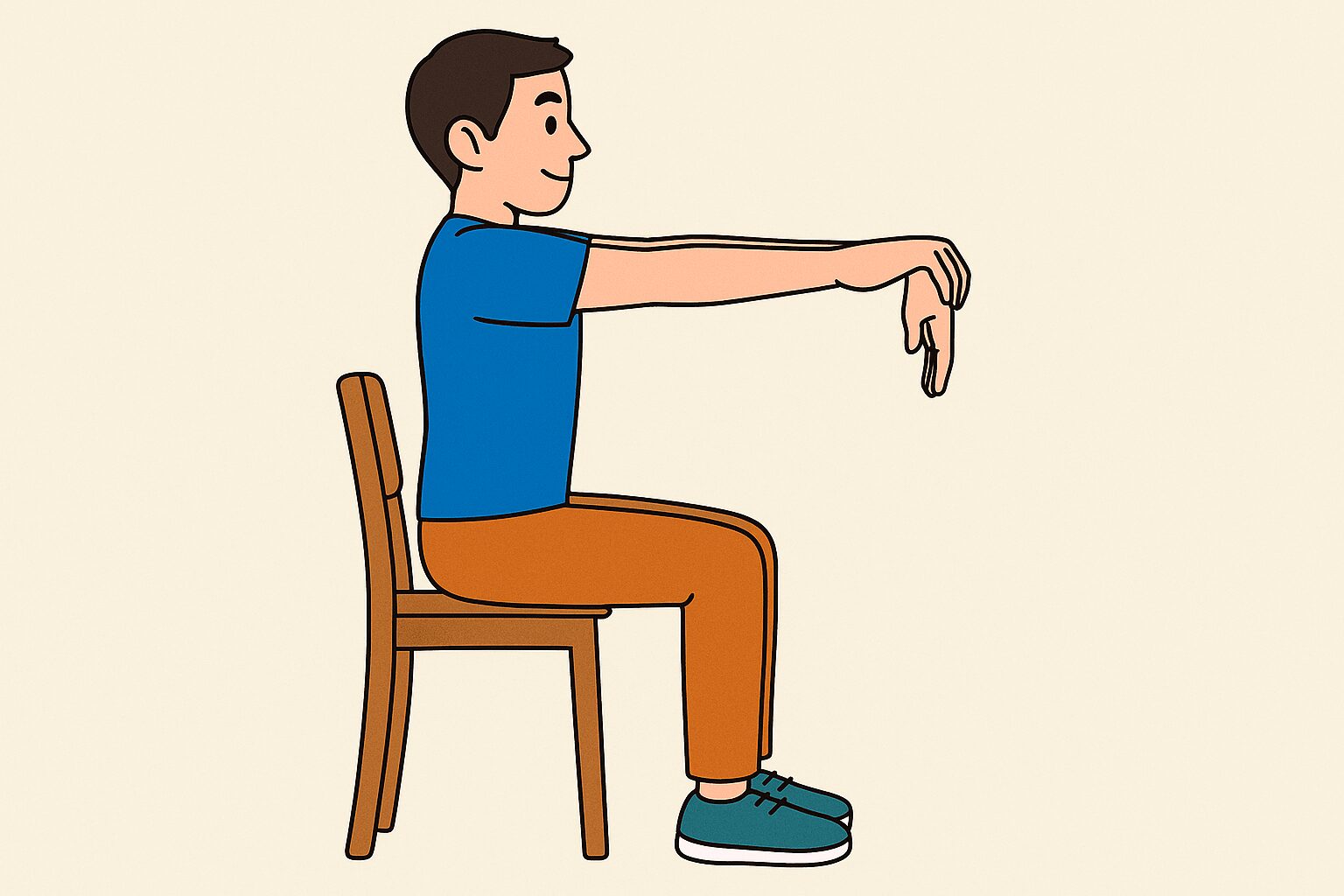 2.右腕の手のひらを外側に向け、指を下向きにして外側に曲げる