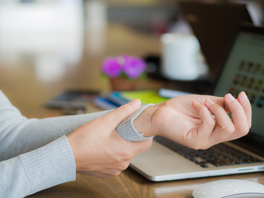 手首や指への負担が、作業時の姿勢に関わっていることも原因のひとつです。無理な姿勢で作業をしていると、身体に余計な力が入って血行不良を招き、腱と腱鞘の摩擦が増加することがあります。