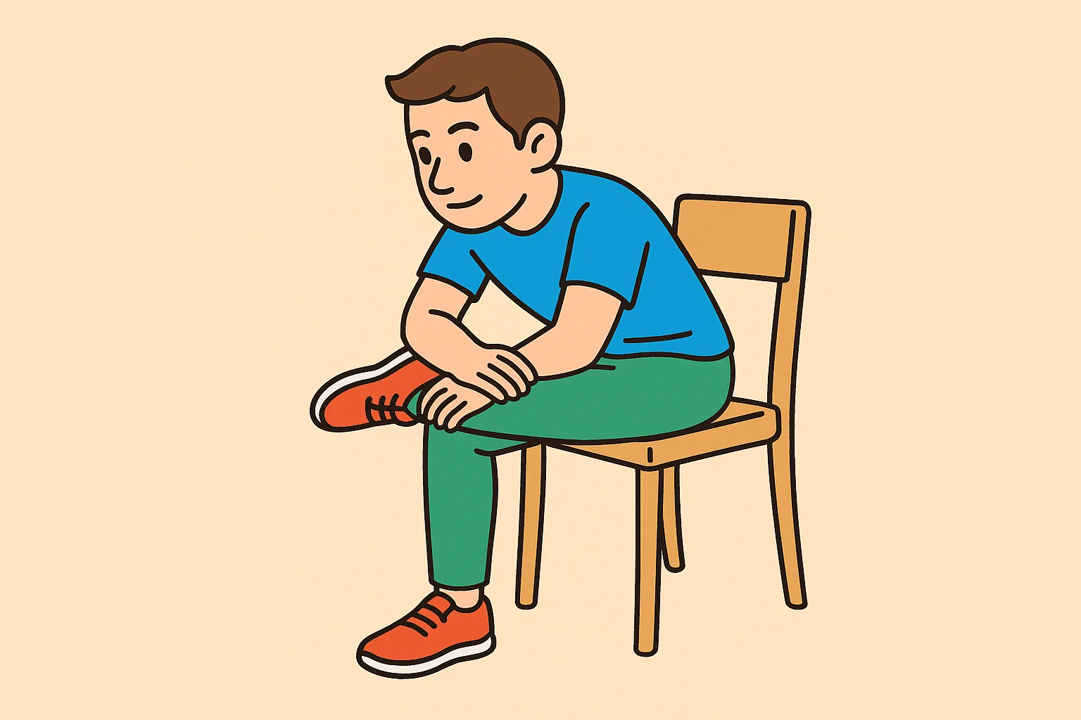 座るときに足を組んだり机に頬杖をついたりして重心が片寄ると、梨状筋に過剰な負担がかかります。椅子に座る際は両足を床につけ、背筋を伸ばして重心を身体の中心に置きましょう。必要に応じて、椅子や机の高さを見直してください。