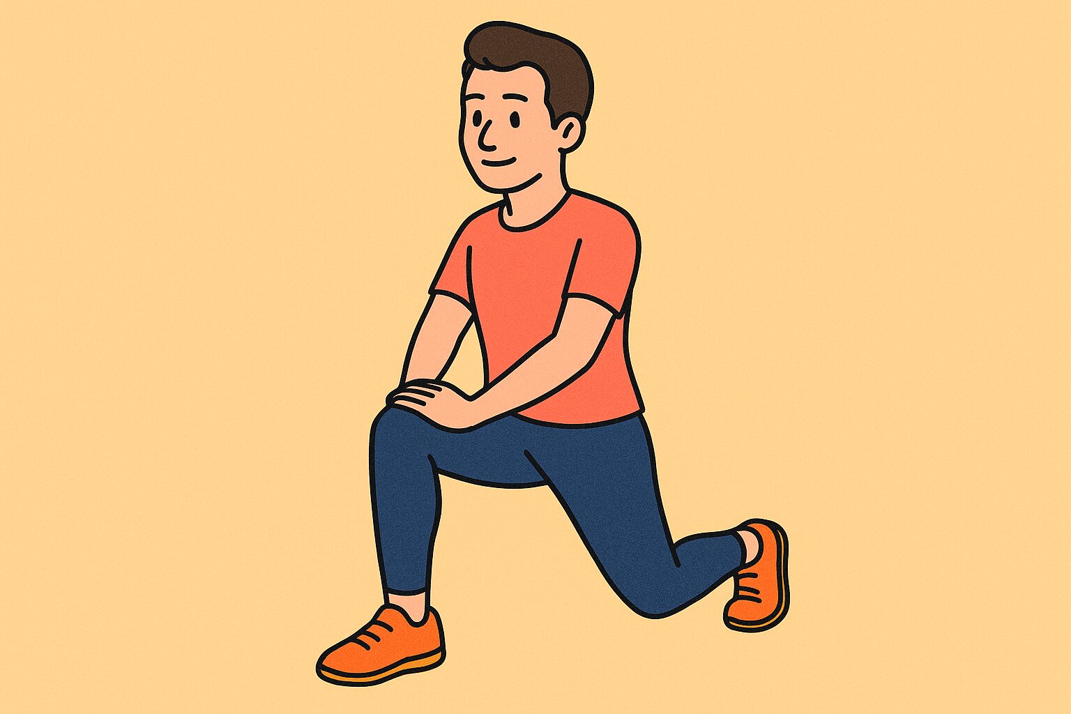 椅子を使わずに腸腰筋を引き伸ばすストレッチ法です。足の動きをなめらかにし、体幹を安定させる効果が期待できます。