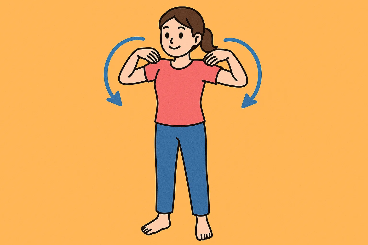 肩こりを感じやすい方におすすめなのが、肩回しです。肩を数回回すことで肩甲骨まわりがほぐれ、血行が促進されます。肩関節を動かすことで肩甲骨の動きも良くなり、肩こりの解消にもつながります。