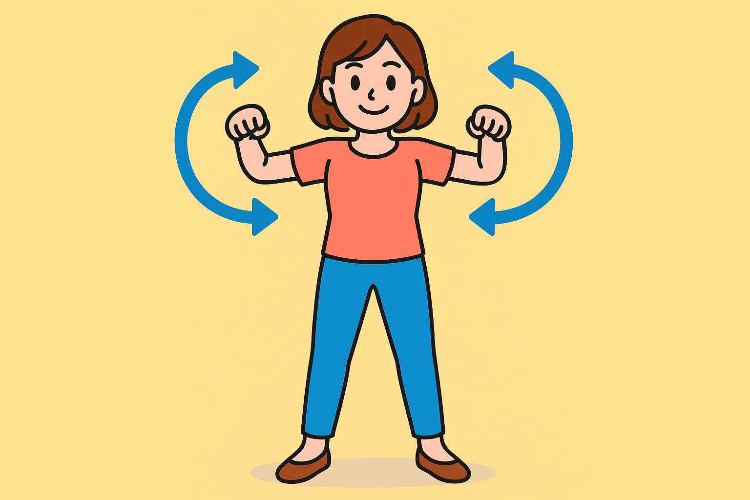 腕の力は抜き、身体の軸を意識しながら行うのがコツです。笑顔でリラックスしながらテンポ良く続けると、脳への刺激が高まりやすくなります。