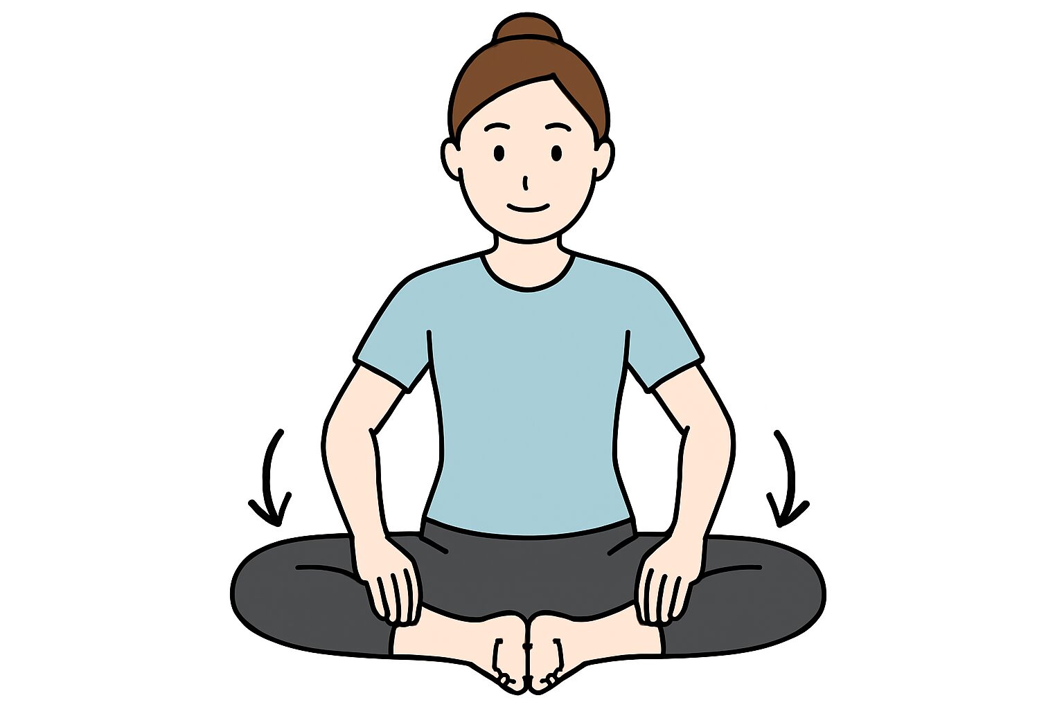 1.床にあぐらをかいて座り、背筋を伸ばす