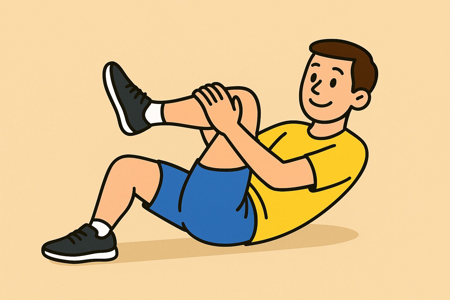 5.右のお尻に伸びを感じた位置で20秒キープし、体育座りに戻る