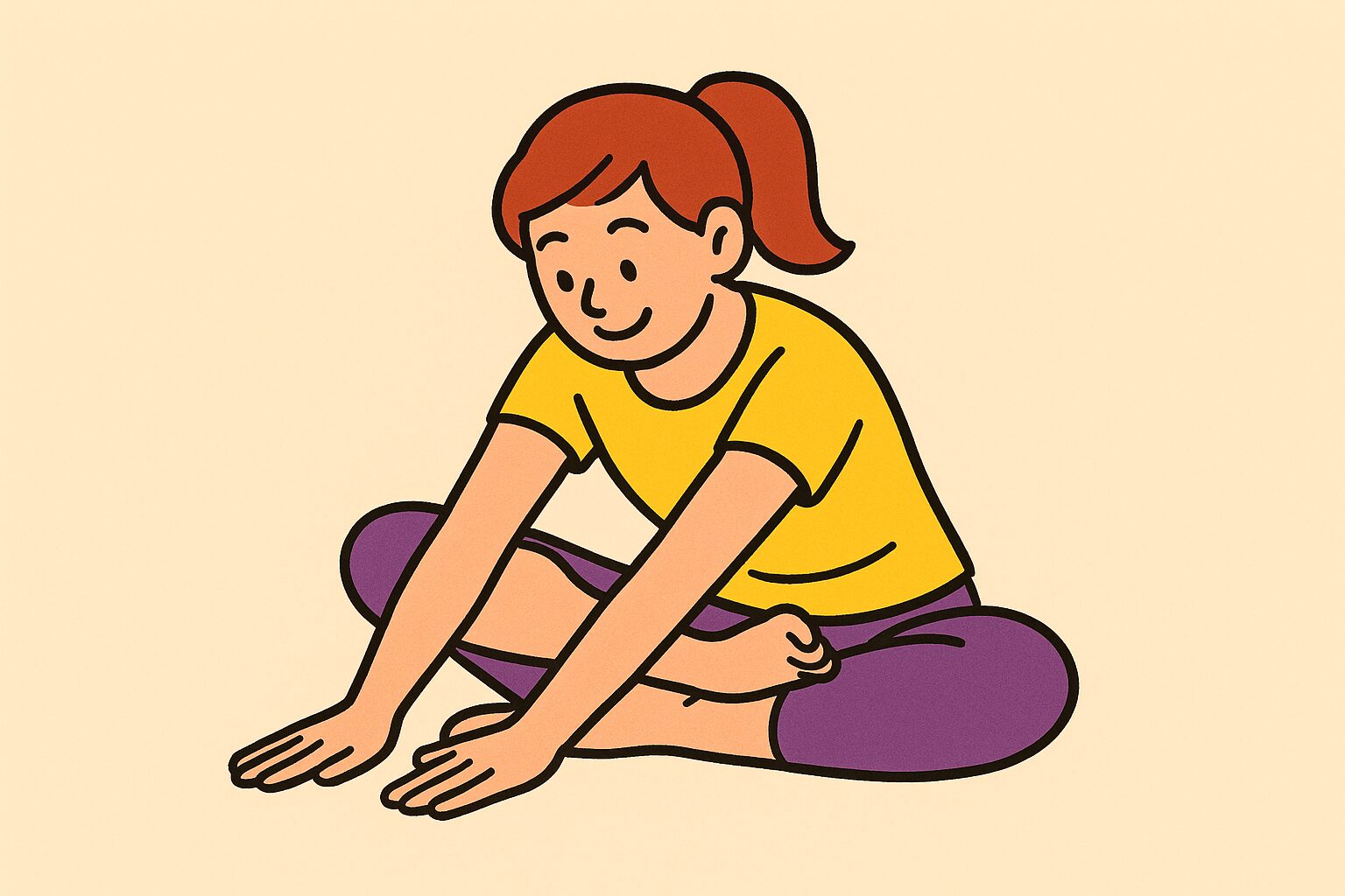 4.お尻に伸びを感じた位置で20秒キープし、あぐらの状態に戻る