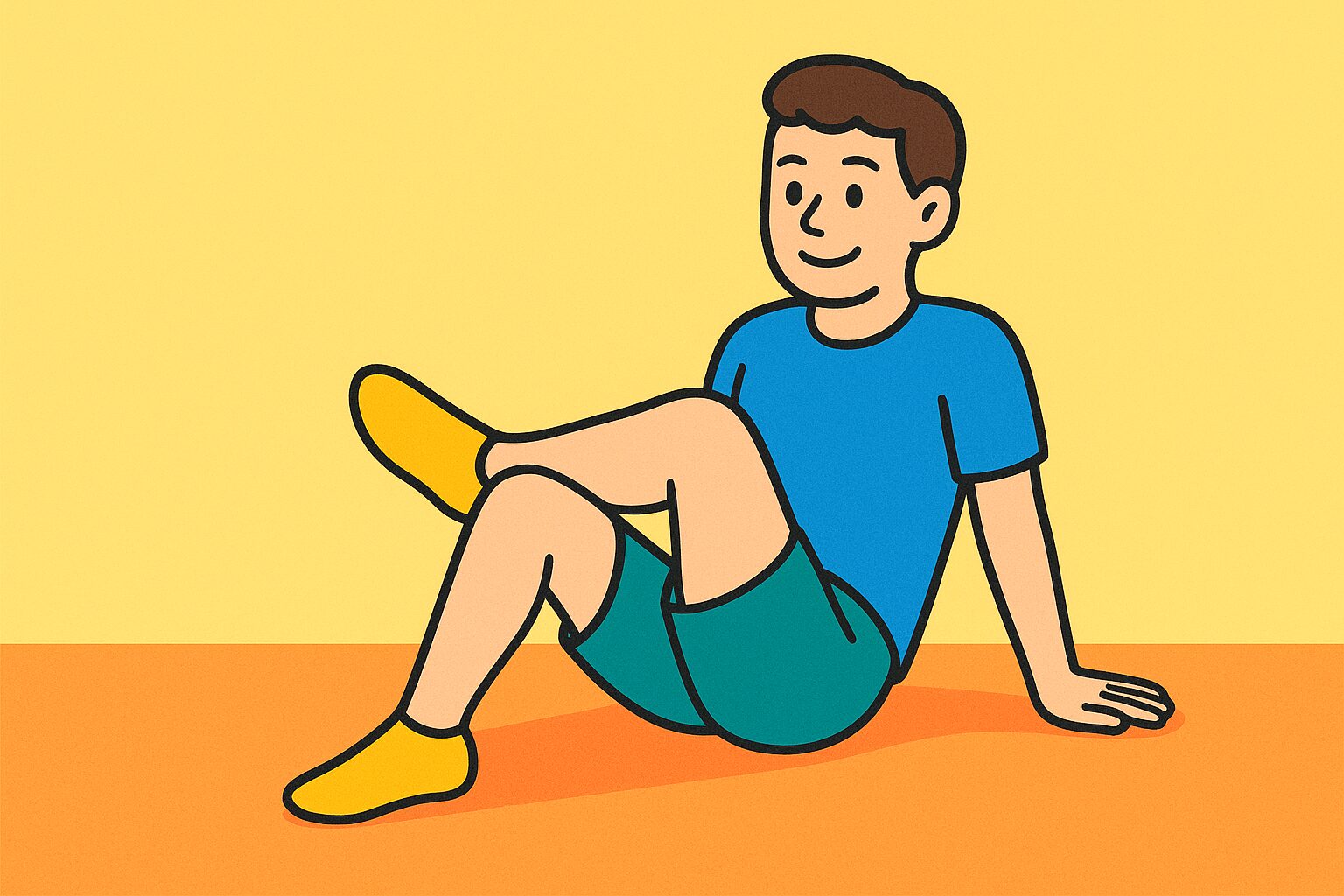 1.床にあぐらをかいて座る