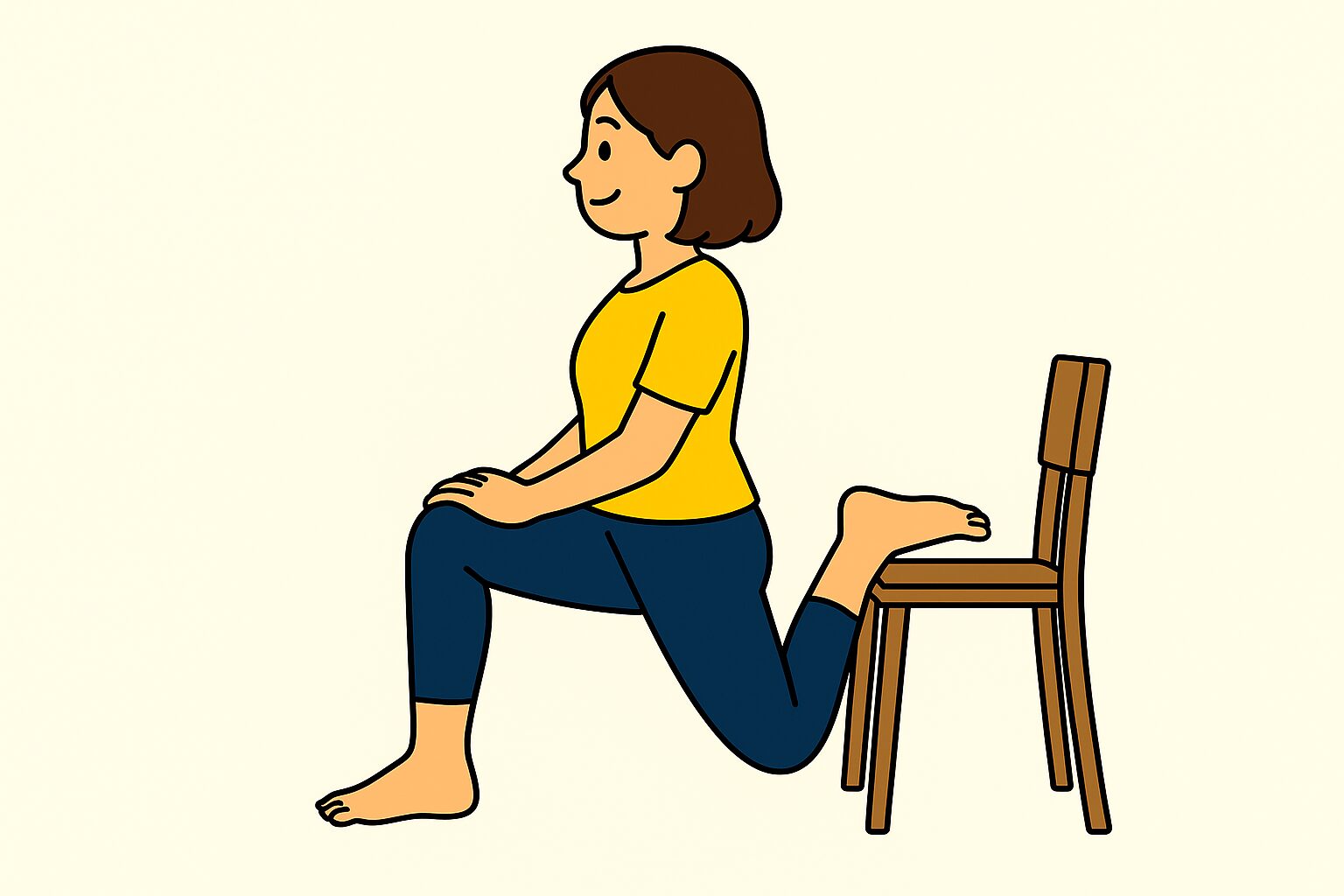 1. 椅子から50cmほど離れ、右足を後ろに引いた状態で座面にスネを乗せる