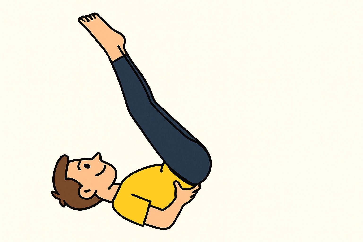 2. 足を高く持ち上げ、つま先から腹部までが一直線になる状態で5秒間キープ