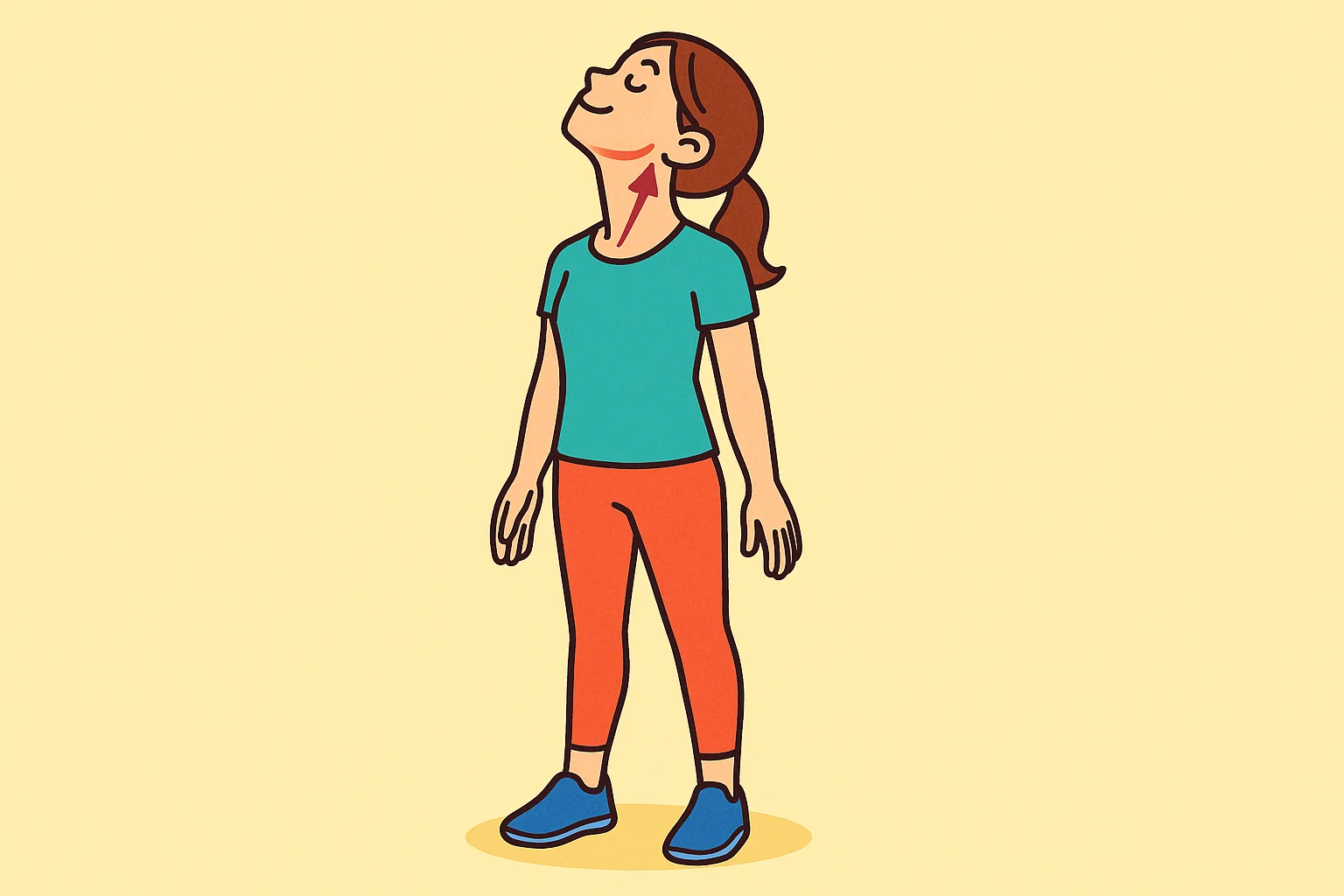 首の前側から側面にかけての筋肉と、喉仏まわりの筋肉を心地良く伸ばすストレッチです。