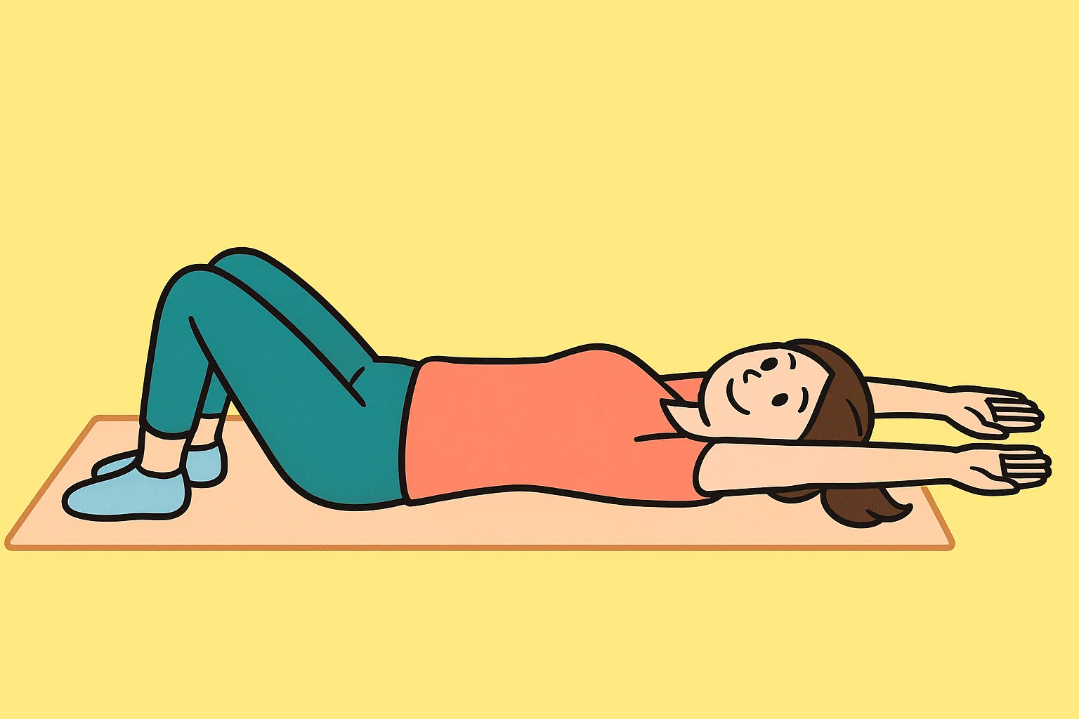 1.床に仰向けになり、手のひらを下にして身体の側面に置く