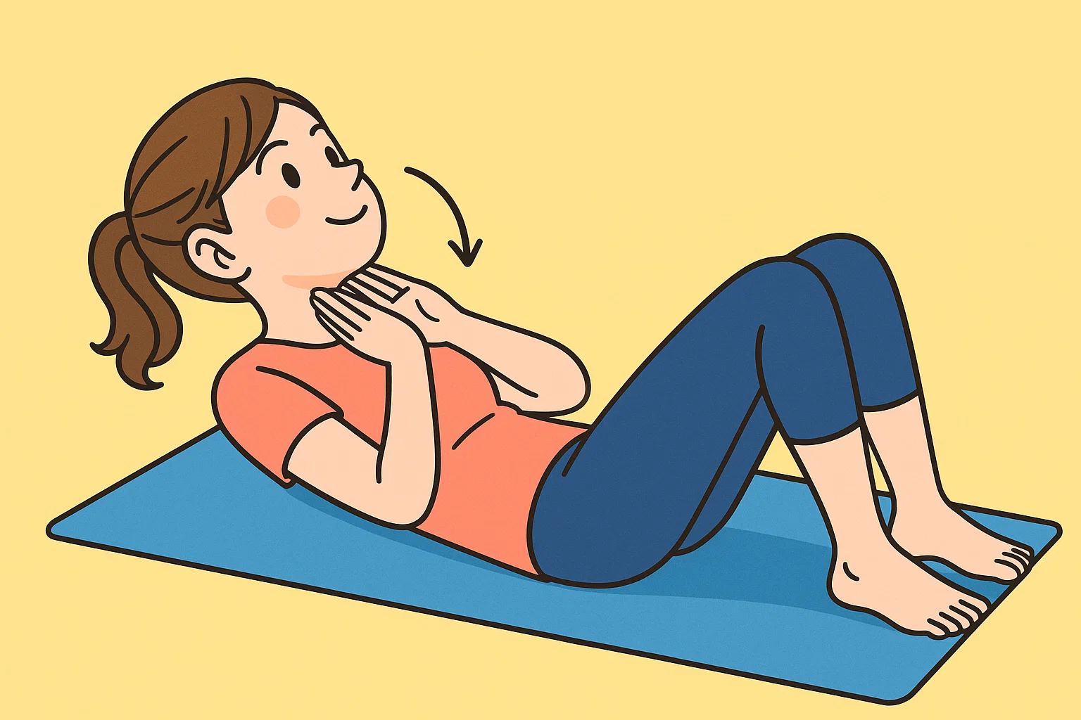 1.床に仰向けになり、両手の指先を軽くあごの下にあてる