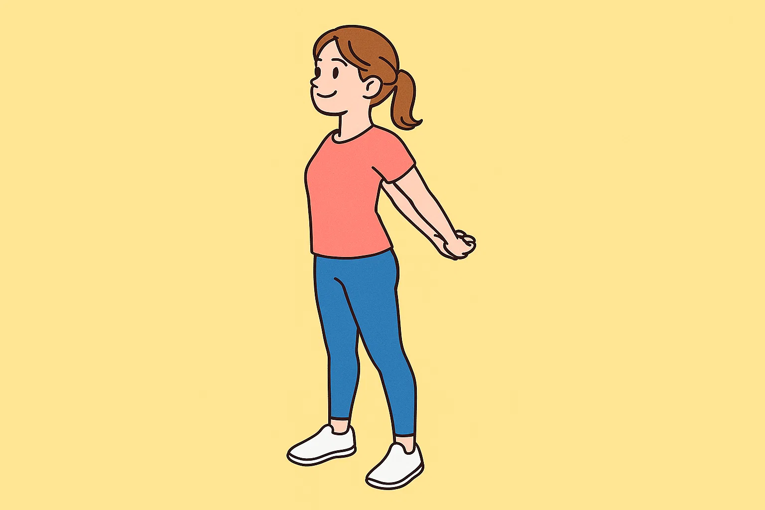 2.胸を開きながら肘を伸ばし、手をできるだけ下に下ろす