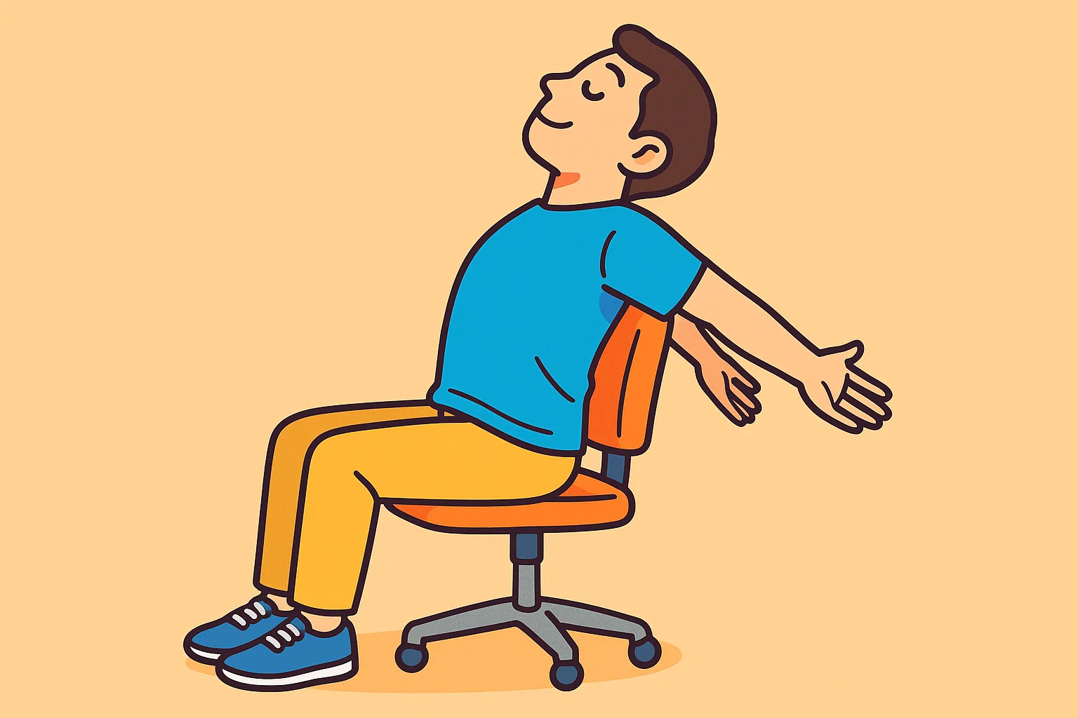 胸の前側を伸ばすストレッチです。座ったままできるため、仕事の合間などにもおすすめです。
