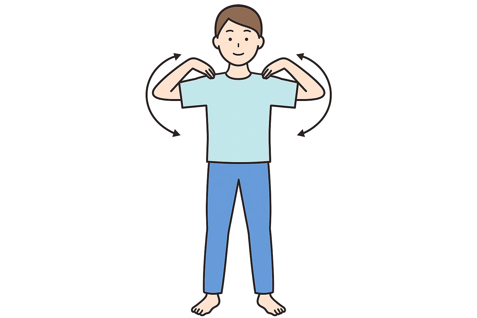 2.そのまま、ひじで大きな円を描くように肩をゆっくり回します。